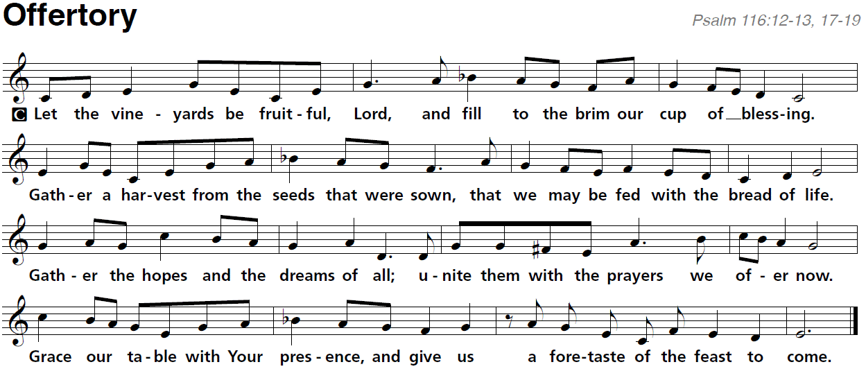 we offer with joy and thanksgiving what You have first given us—ourselves, our time, and our possessions, signs of Your gracious love. Receive them for the sake of Him who offered Himself for us, Jesus Christ our Lord. Amen.