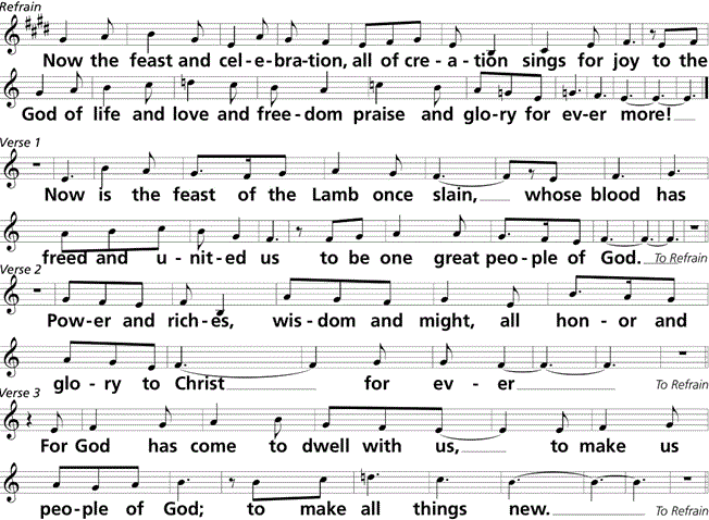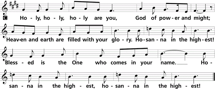 It is our duty and delight that we should everywhere and always offer thanks and praise to You, O God, through Jesus Christ and the Spirit, whom You poured out upon the church and Your people, therefore, with the church on earth, all creation and the host of heaven we praise Your name and join in their unending hymn...