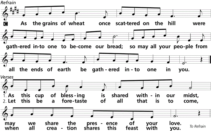 Our Lord Jesus Christ, on the night when He was betrayed, took bread, and when He had given thanks, He broke it and gave it to the disciples and said: “Take, eat; this is My ☩ body, which is given for you. This do in remembrance of Me.”
